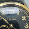 The BALTIC MR01 is a micro-rotor automatic watch from a new French brand. The dress watch features a classic black dial and yellow gold-colored case. Its main feature is the micro-rotor mechanism in the thin automatic movement. It has a skeleton back to fully enjoy the precise movement of the machinery. The dial has traditional Breguet numerals and leaf hands. The small seconds at the 7 o'clock position create an elegant look. The case diameter is approximately 1.42 inches, the thickness is approximately 0.39 inches, and the lug width is approximately 0.79 inches. The watch weighs approximately 48g. It is made of stainless steel with a leather strap and an adjustable wrist size. It is an automatic winding type with a manual winding mechanism. Accessories include a box and warranty card (dated November 2024).