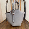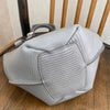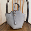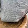 The TOFF&LOADSTONE Mini Heptagon bag is gray and made of lizard-embossed cowhide leather.