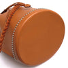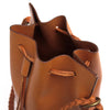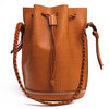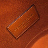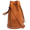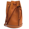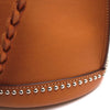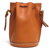 Daniel & Bob DAB P385TB SALLY cowhide leather shoulder bag in a trendy drawstring style. The bag features a simple form with a fine-grained cowhide leather and stud design accent. The size is compact, but the opening is large and the gusset is wide, providing excellent storage capacity. Approximate size details: width approximately 7.87 inches, vertical width approximately 11.81 inches, maximum shoulder length approximately 27.56 inches. Material: high-quality leather (cowhide).