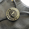 The design is an epi leather drawstring shoulder bag with a cross-body style, medal, and metal logo, for women.