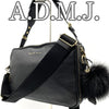 Admj Shoulder Bag 2-way Leather Black Double Compartment Fur Handbag Designer
