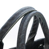 The suede portion of the shoulder strap is frayed, with slight hardware marks.