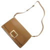 The Roger Vivier bag is brown with gold hardware and was made in Italy.