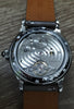 Features include a reserve indicator, hands with folded tips, an easy-to-read dial, a cabochon crown, and a see-through back.