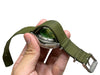 The model features an earth-toned khaki base reminiscent of a classic field watch, with beige accents.