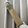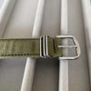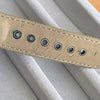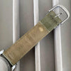 There are fine scratches on the surface, damage (marks, cracks) on the inside of the belt, and partial discoloration on the metal fittings of the belt holes.