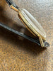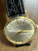 This is a hand-wound watch with a silver dial and gold-filled case.