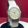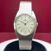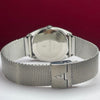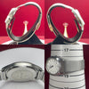 Original stainless steel bracelet, Swiss made, white dial with bar index.