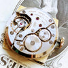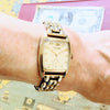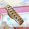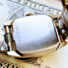 The case color is gold with a silver back, and the case size is 1.06 x 1.10 inches (excluding the crown).