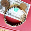 The band color is gold with a silver back, and the band material is gold-plated with a stainless steel back.