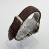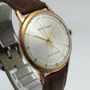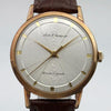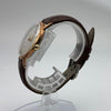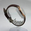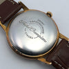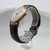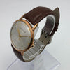 It features a manual winding movement, a gold-plated/stainless steel case, and a new leather band from another company.