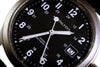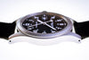 The HAMILTON Khaki Mechanical is a used, authentic hand-wound watch with a black dial.