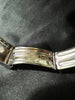 Accessories include the original outer box, plastic case, one extra link, the original warranty, and product tag; the outer box and plastic case are considerably deteriorated, and the tag is cut.