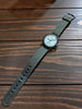The size is a military size of 34 mm (1.34 inches including the crown) and a lug width of 15mm (0.59 inches), based on the original.