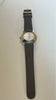 It features a slightly aged dial with gold and red indices, and gold-colored hour and minute hands.