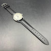 The band material is leather (aftermarket product) and black in color.