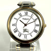 BURBERRY 11500 G men's quartz vintage watch with spare links, featuring a white dial with Roman numerals and a Swiss-made movement.